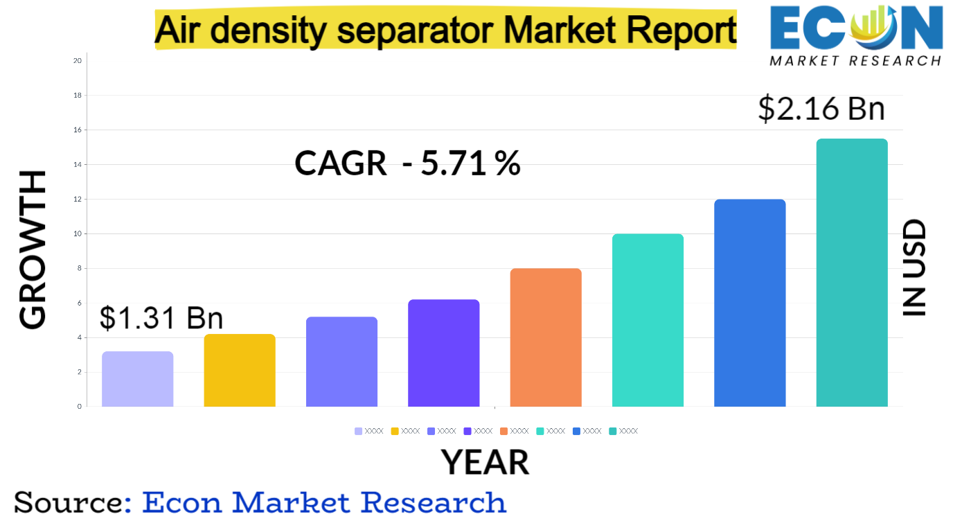 global air density separator market size was USD 1.31 billion in 2023 and the market is projected to touch USD 2.16 million by 2032, at a CAGR of 5.71% during the forecast period.