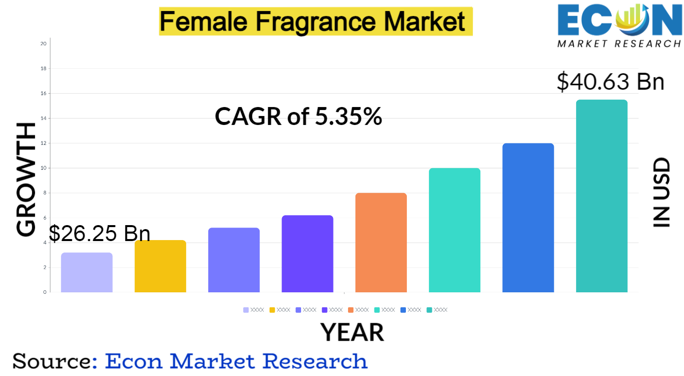 The Female Fragrance Market is predicted to reach approximately USD 40.63 Billion by 2031, at a CAGR of 5.35% from 2022 to 2031.