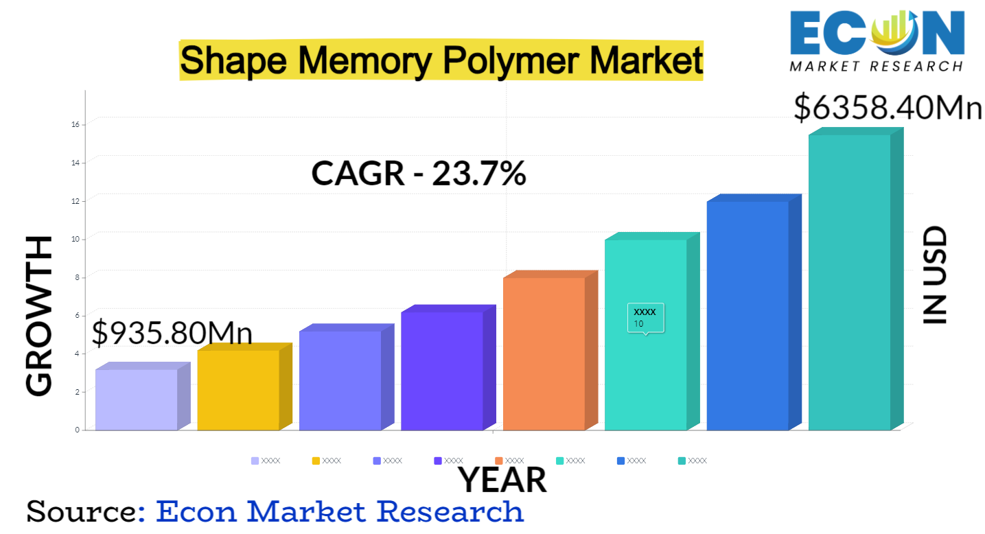 The Global Shape Memory Polymer Market was valued at USD 935.80 million in 2022 and is estimated to reach approximately USD 6358.40 million by 2031, at a CAGR of 23.7% from 2023 to 2031.